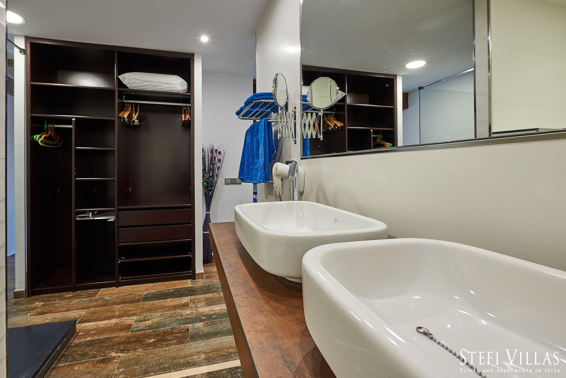 Hay camas supletorias para 4 niños menores de 12 años por un cargo extra (por día). La casa está completamente vallada y cuenta con sistemas de alarma y cámaras de vigilancia. Existe la posibilidad de alojar a huéspedes adicionales bajo petición y por un coste adicional. Dormitorios: 2 master suites con baño con ducha de hidromasaje y terraza cubierta, cama de 150 x 200 cm. 4 habitaciones dobles con dos baños compartidos, uno con bañera y otro con hidromasaje, cama de 150 x 200 cm.