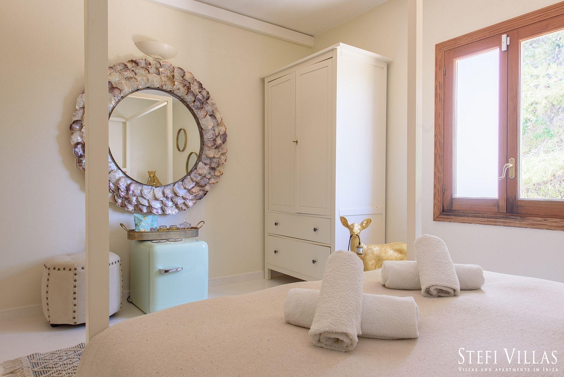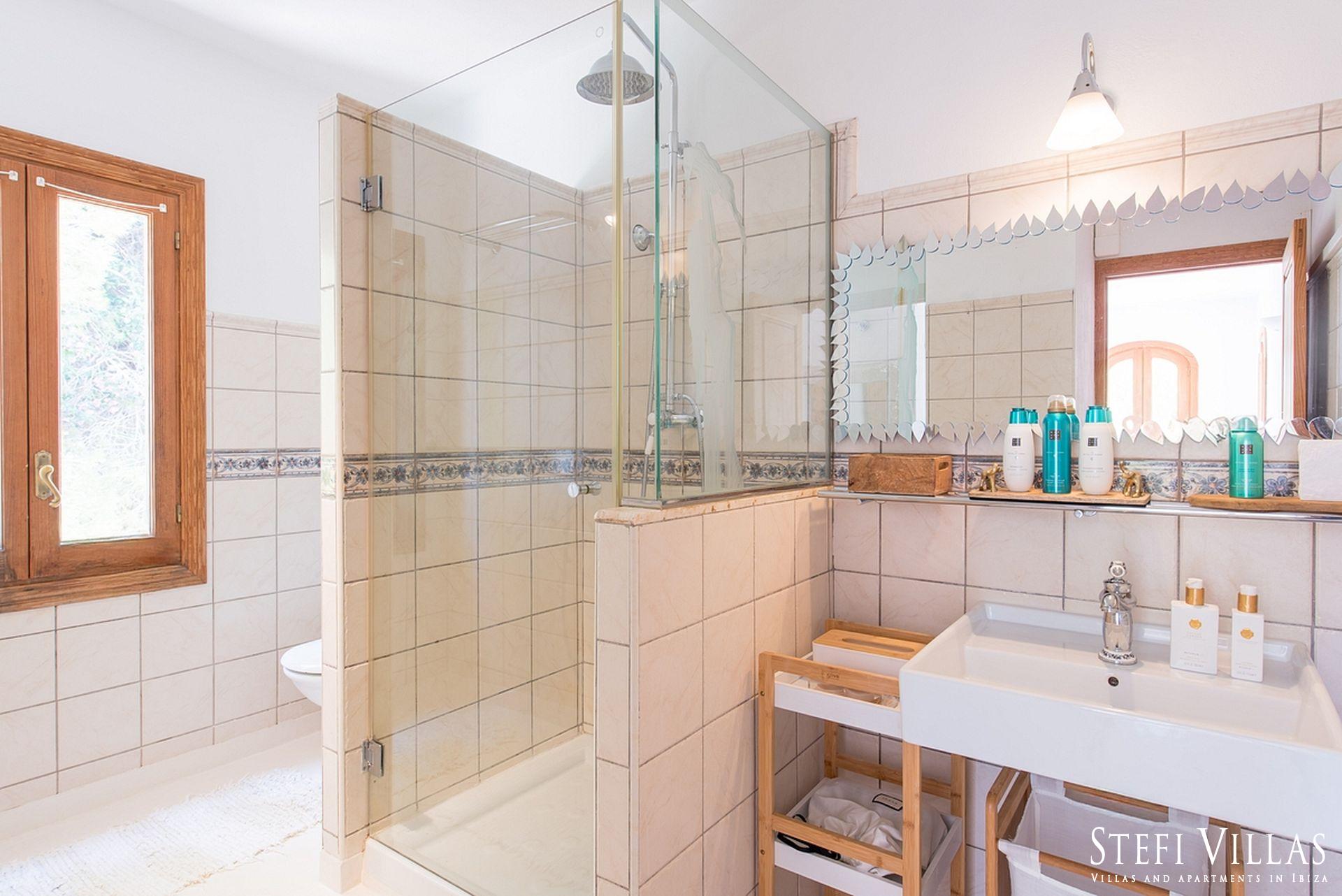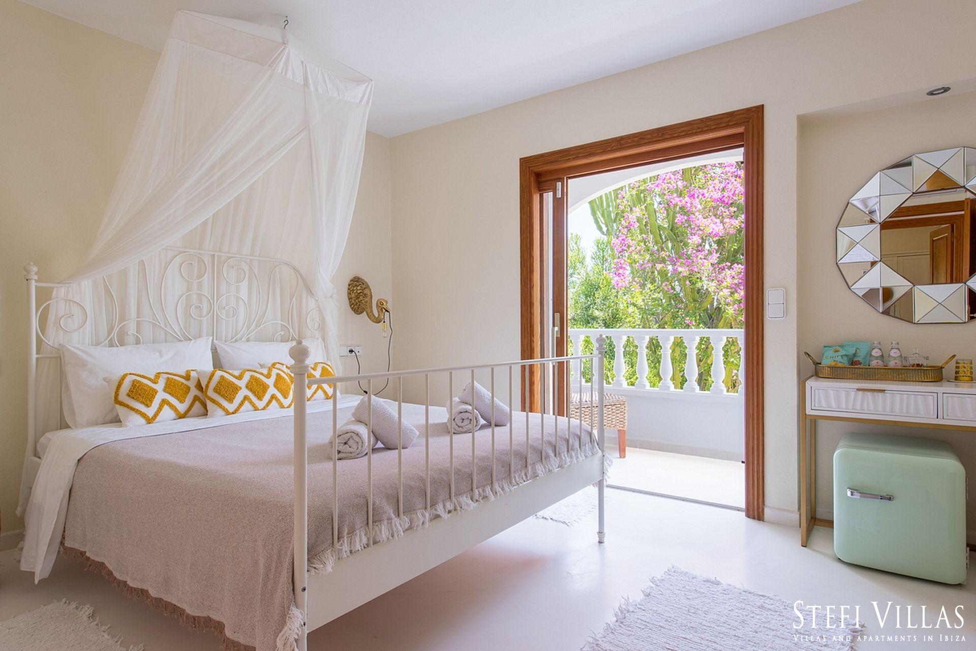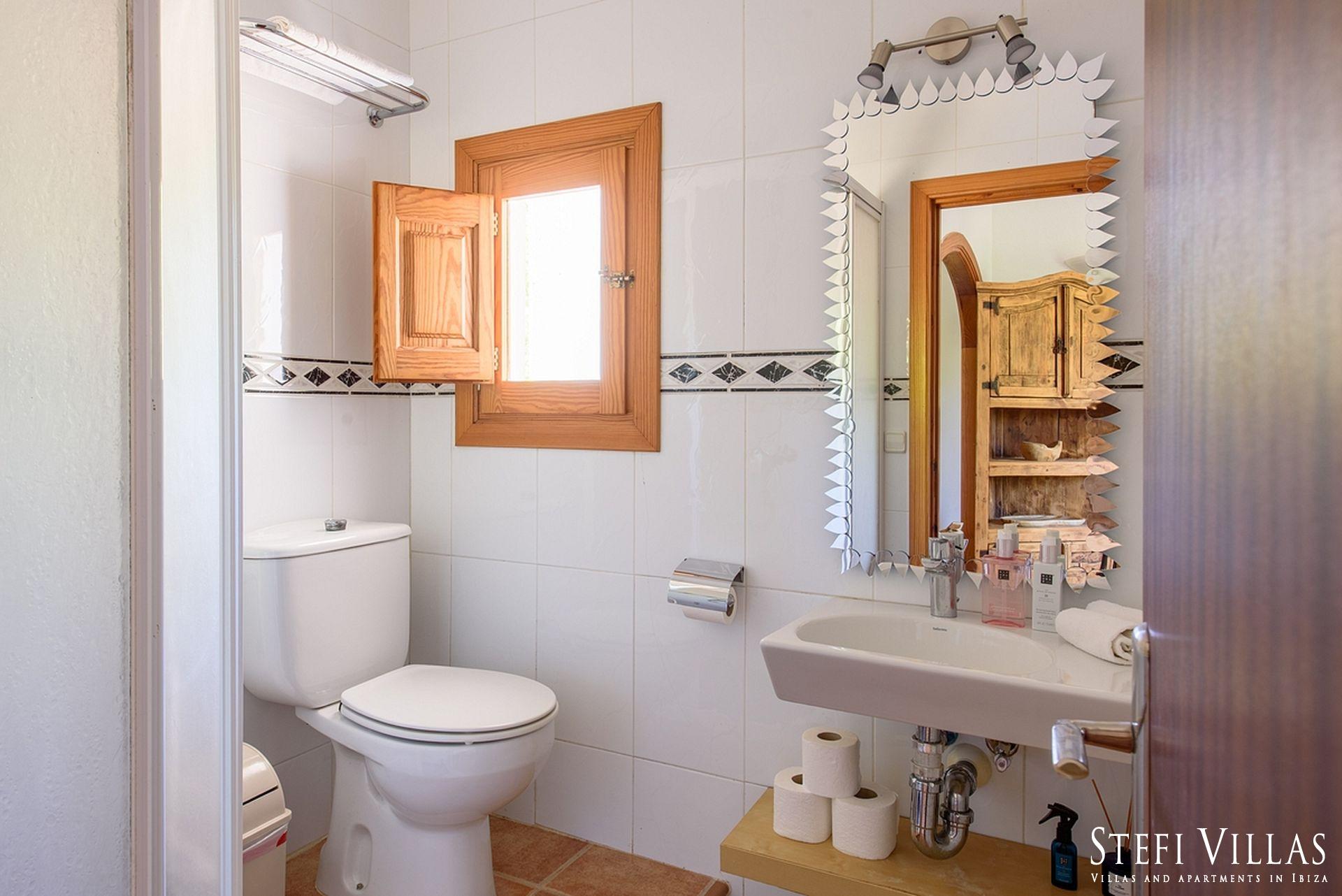 La villa se encuentra en el norte de Ibiza, a 4 km de la playa de Benirras. La casa principal cuenta con 3 dormitorios con cama doble, 2 baños, aseo, salón, terraza, comedor y cocina.