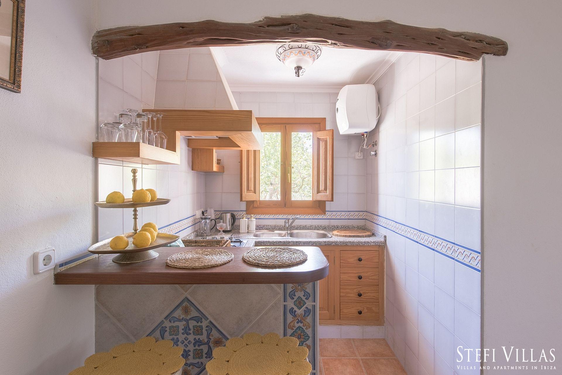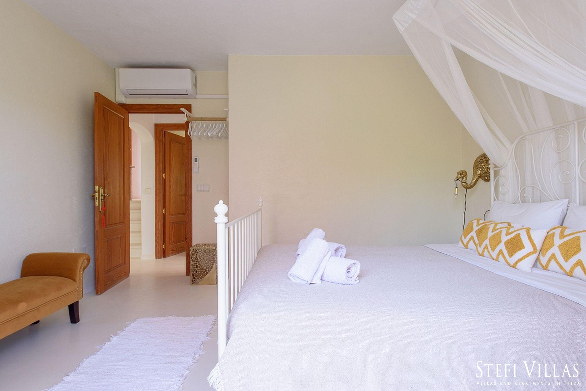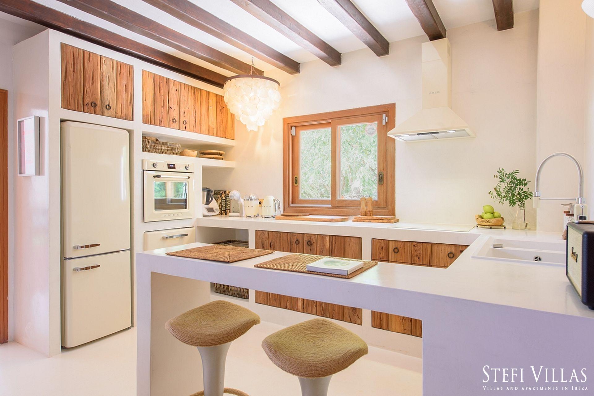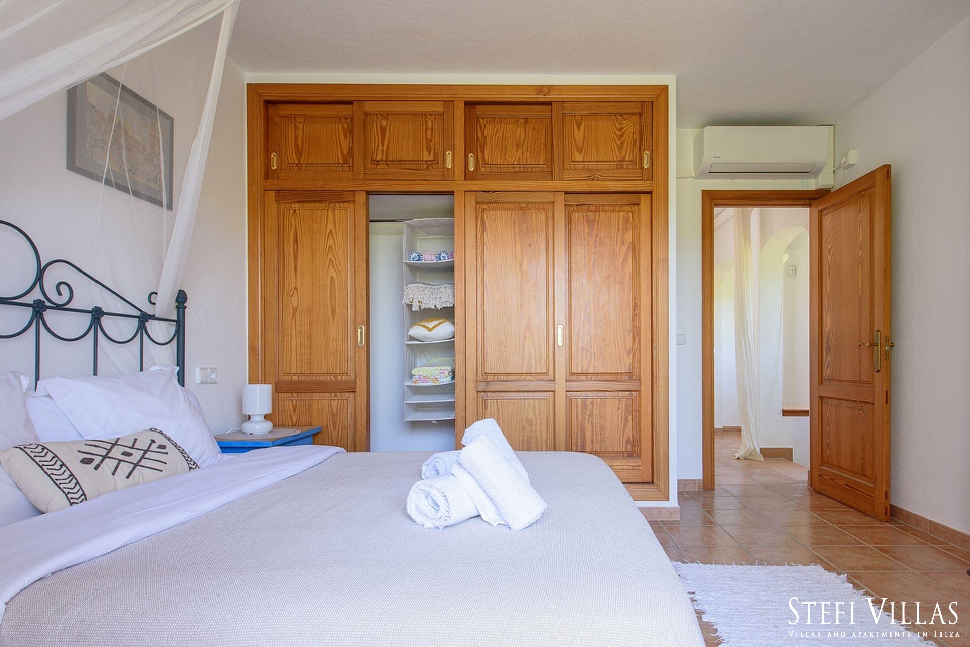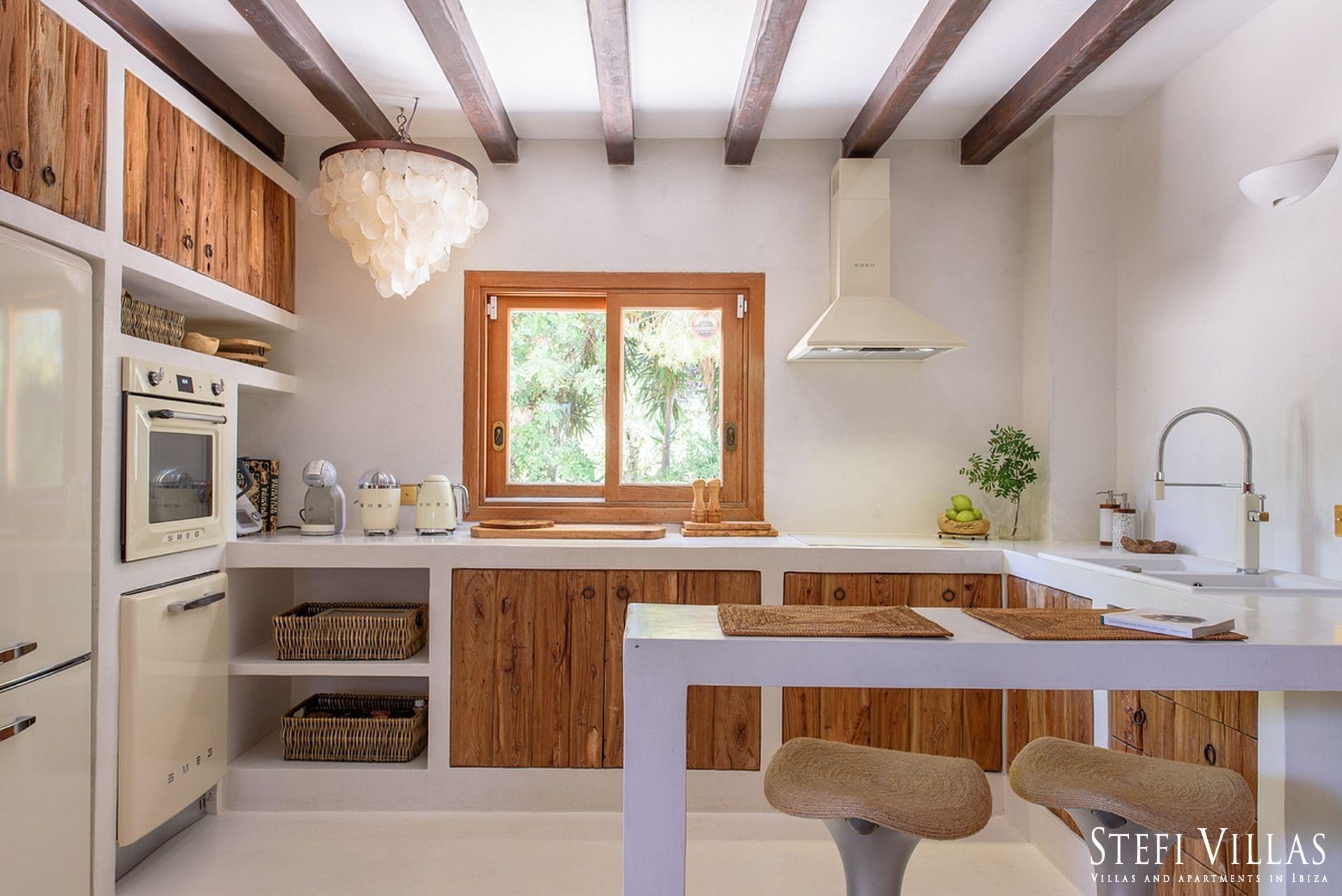 La villa se encuentra en el norte de Ibiza, a 4 km de la playa de Benirras. La casa principal cuenta con 3 dormitorios con cama doble, 2 baños, aseo, salón, terraza, comedor y cocina.