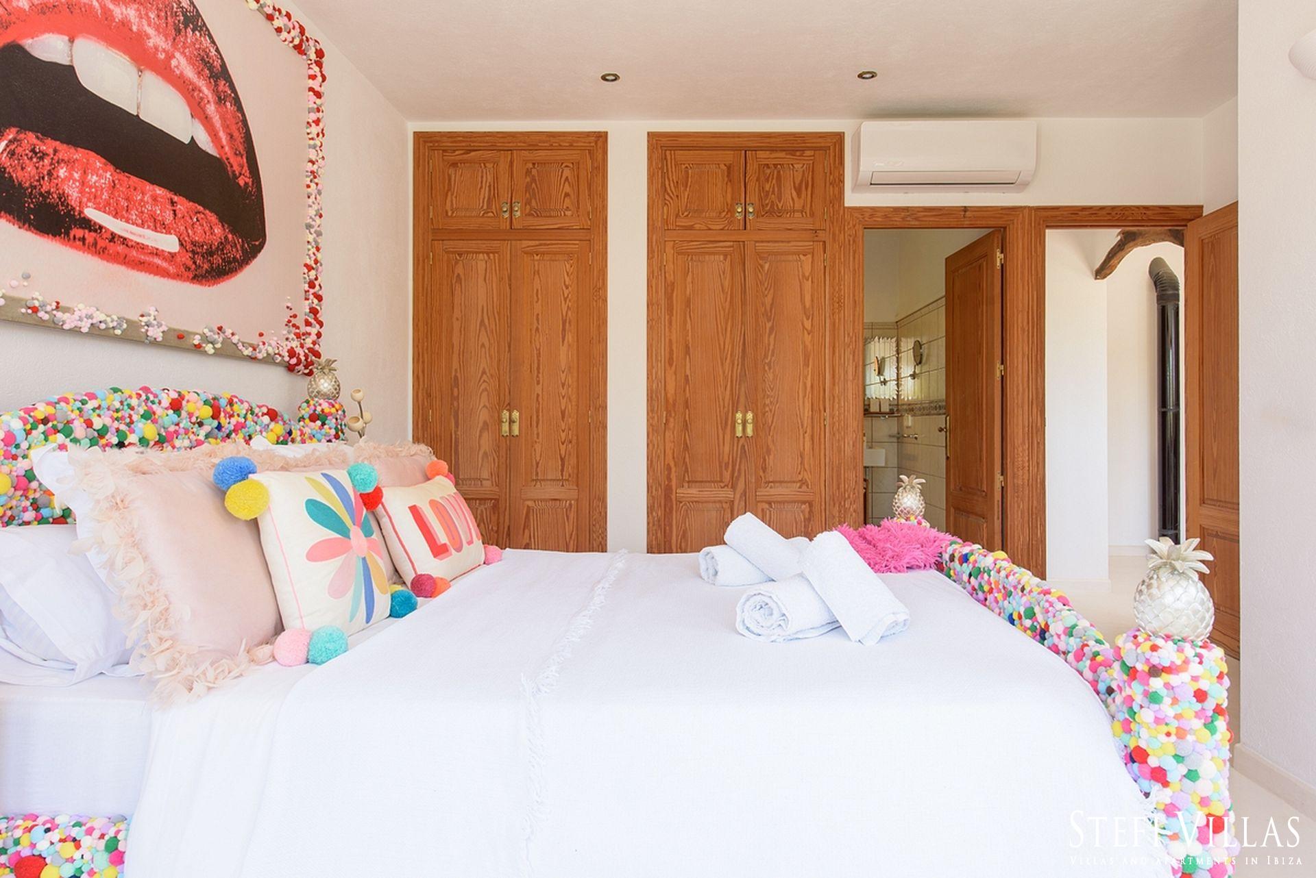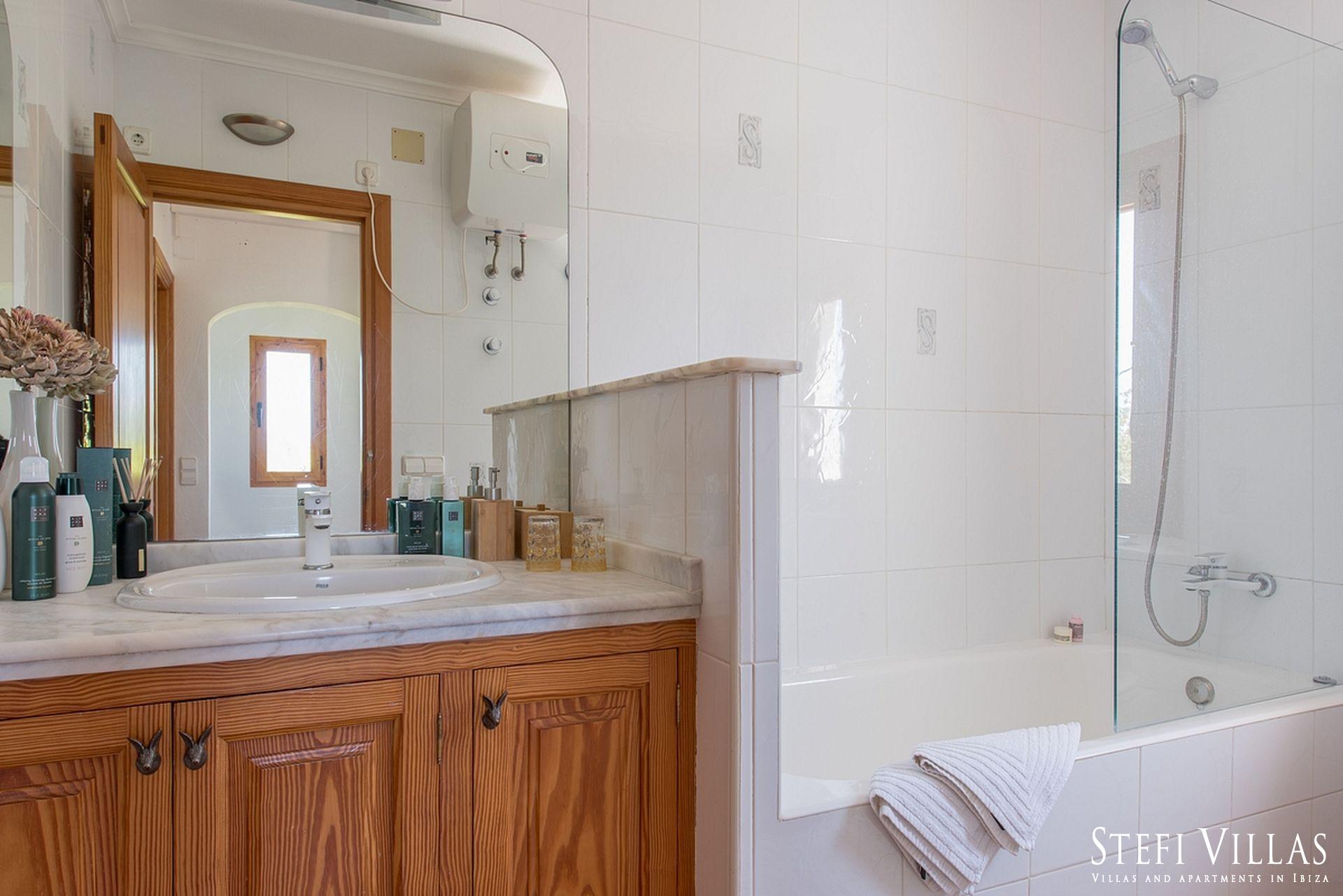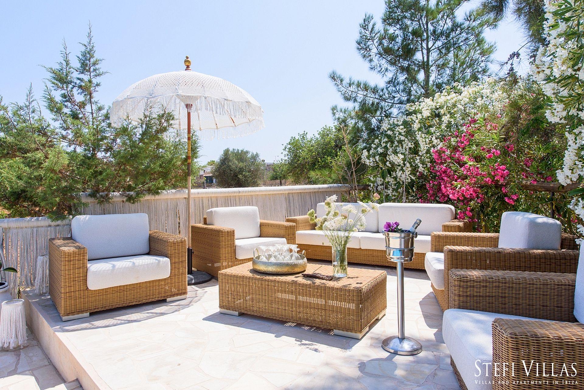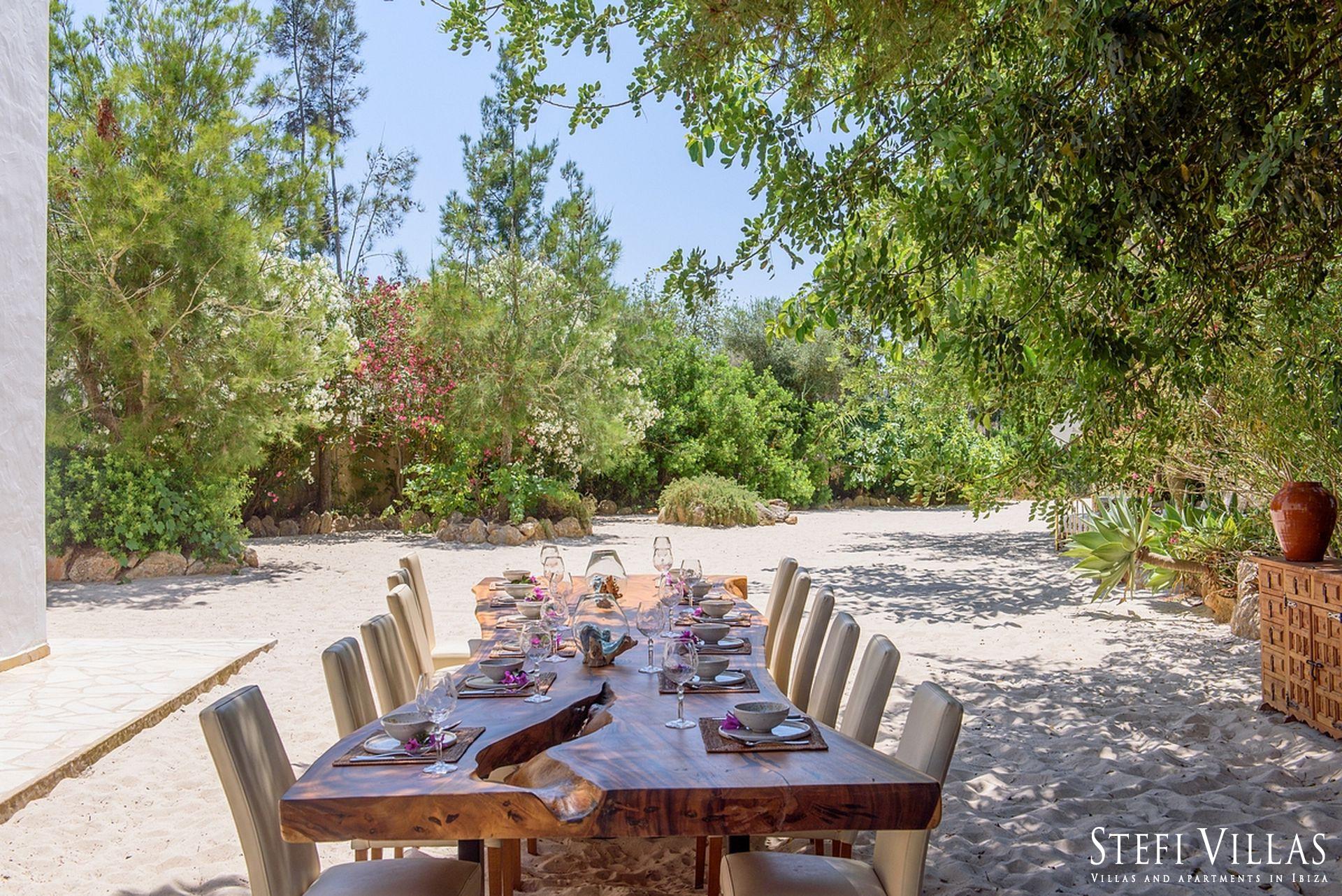 La villa se encuentra en el norte de Ibiza, a 4 km de la playa de Benirras. La casa principal cuenta con 3 dormitorios con cama doble, 2 baños, aseo, salón, terraza, comedor y cocina.