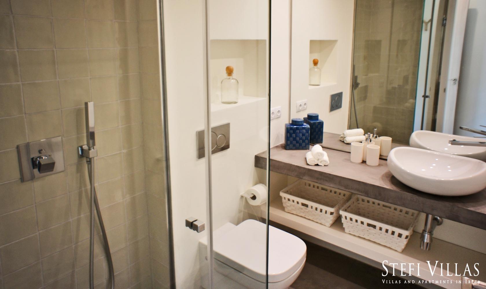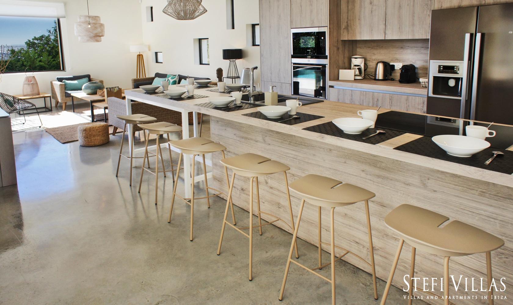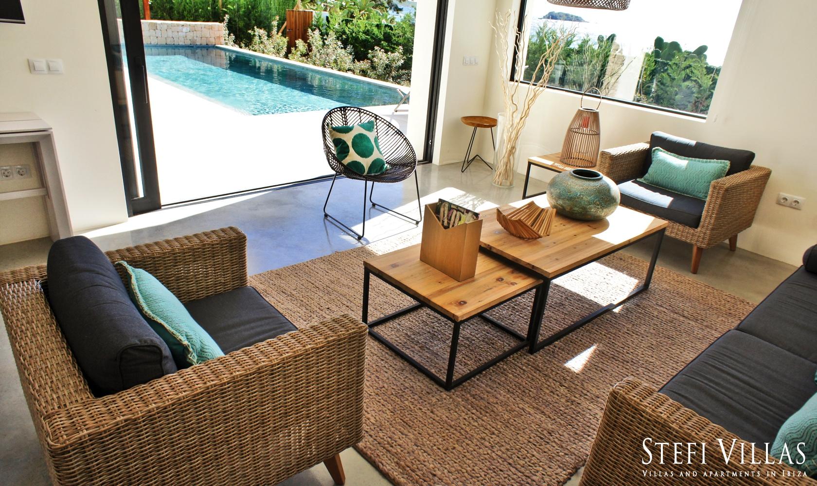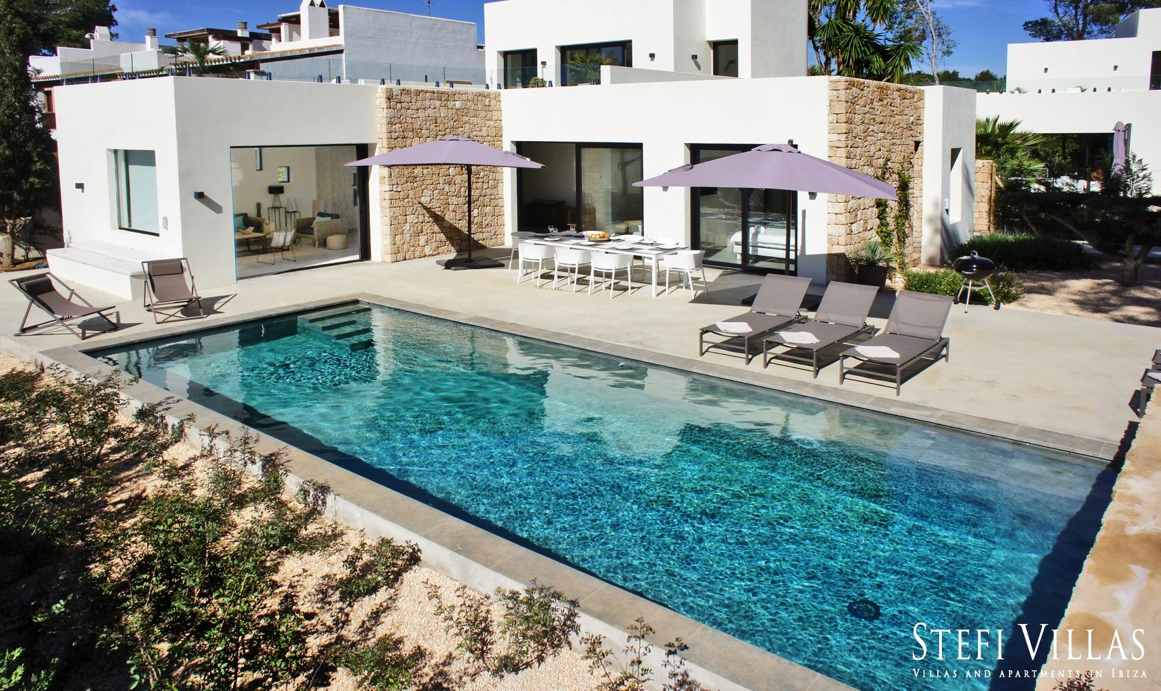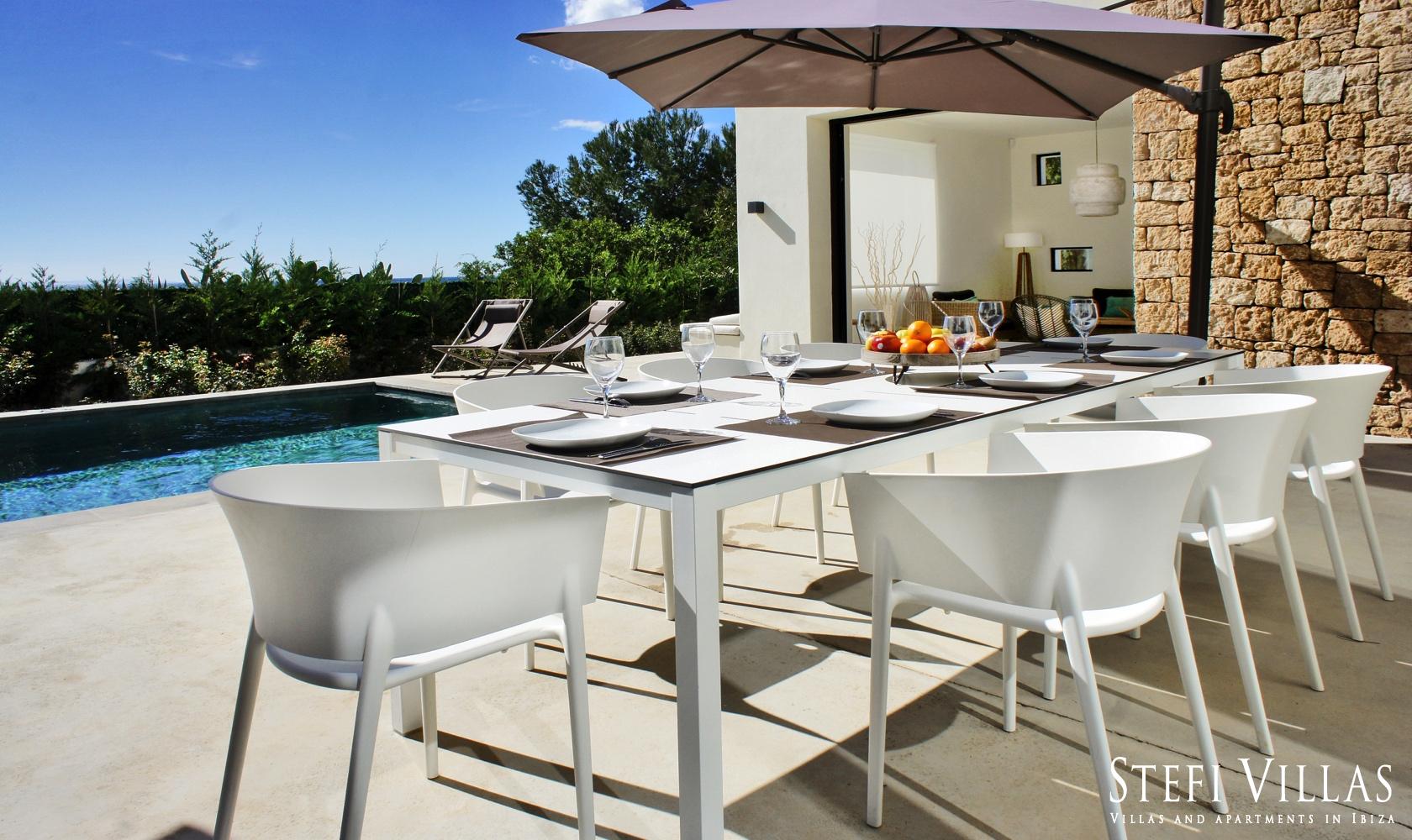 Cette magnifique villa très moderne, toute proche des plages de Cala Pada, Niu Blau et Cala Martina dans la partie Est de l’ile
