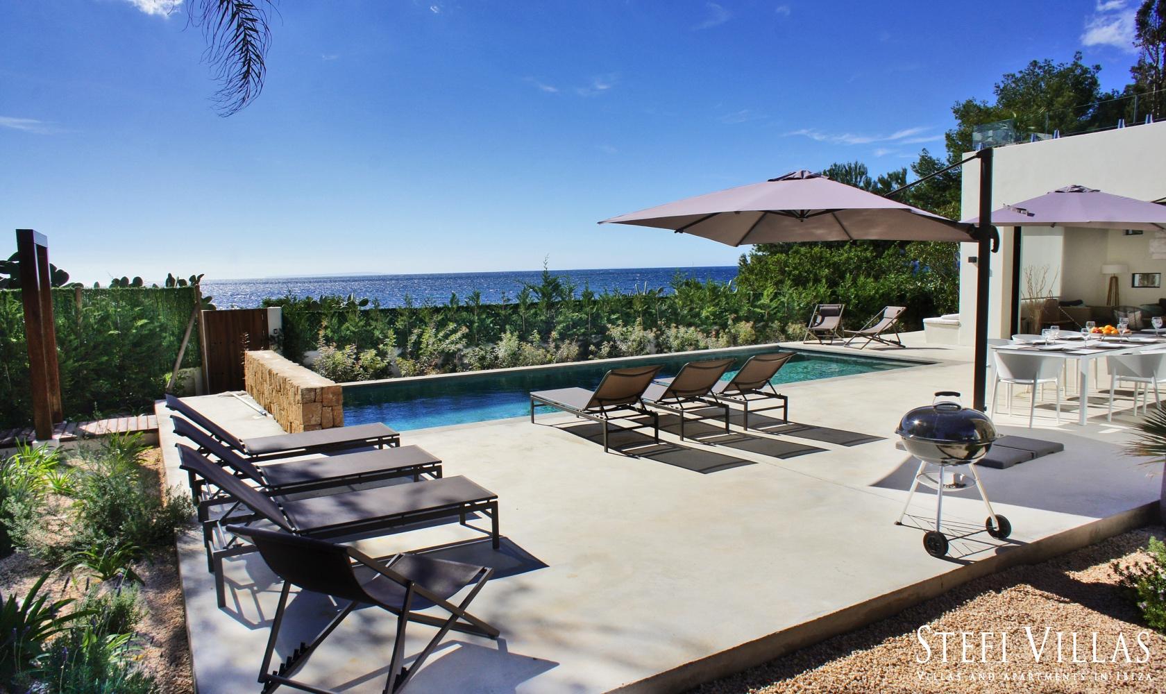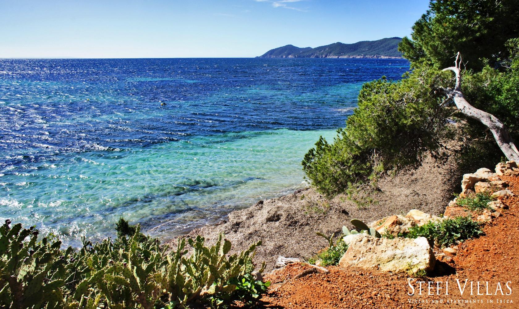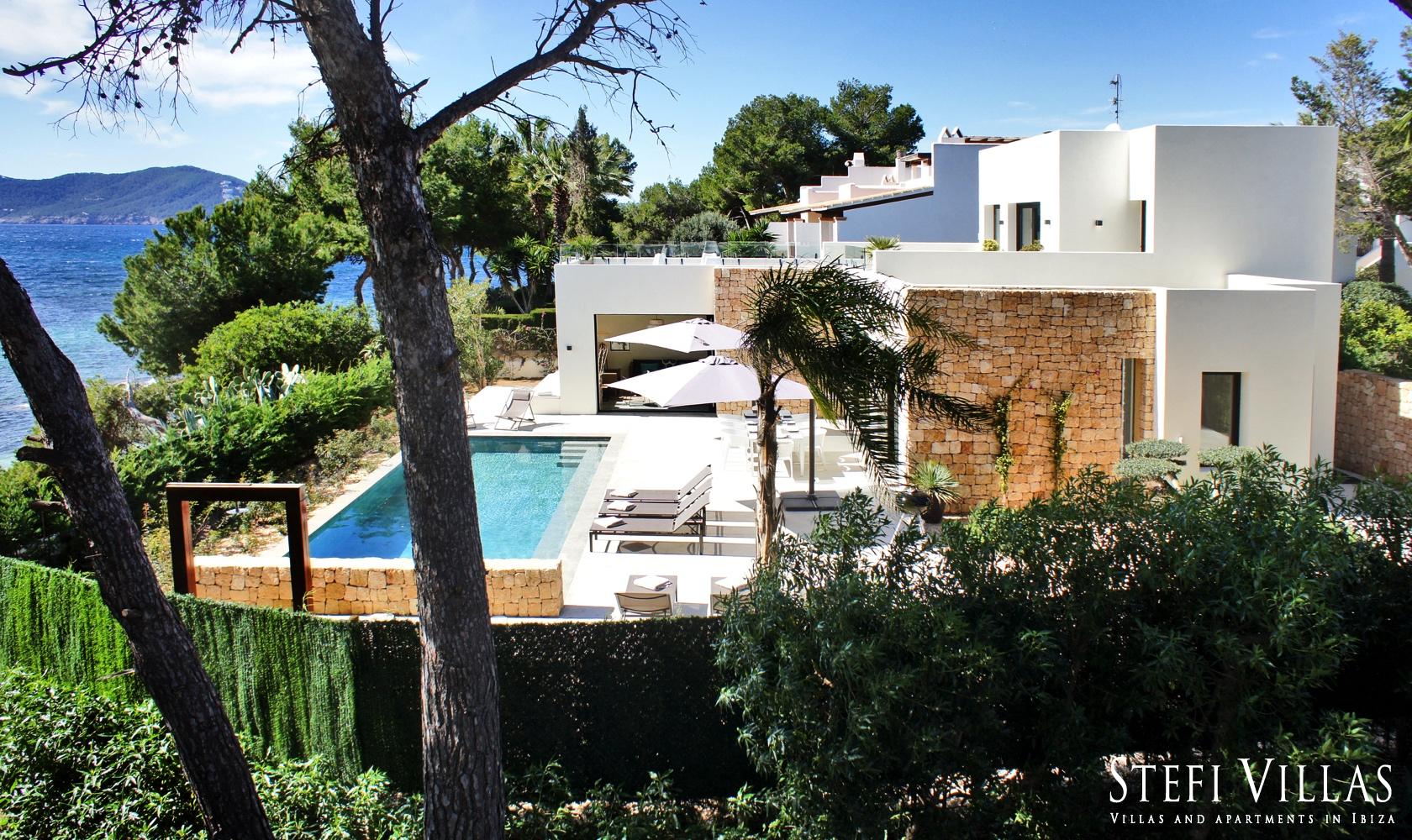 Villa en première ligne de mer Ibiza se trouve dans un endroit calme, à seulement 20 m. de la mer  et vous offre un accès direct à la plage de Cala Pada à 100m.