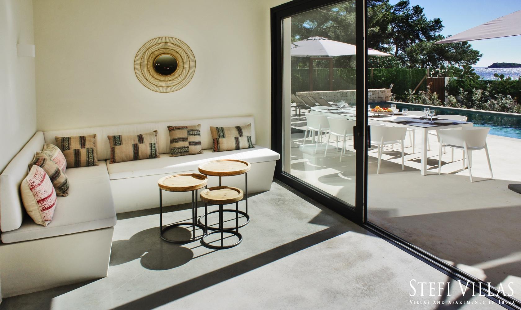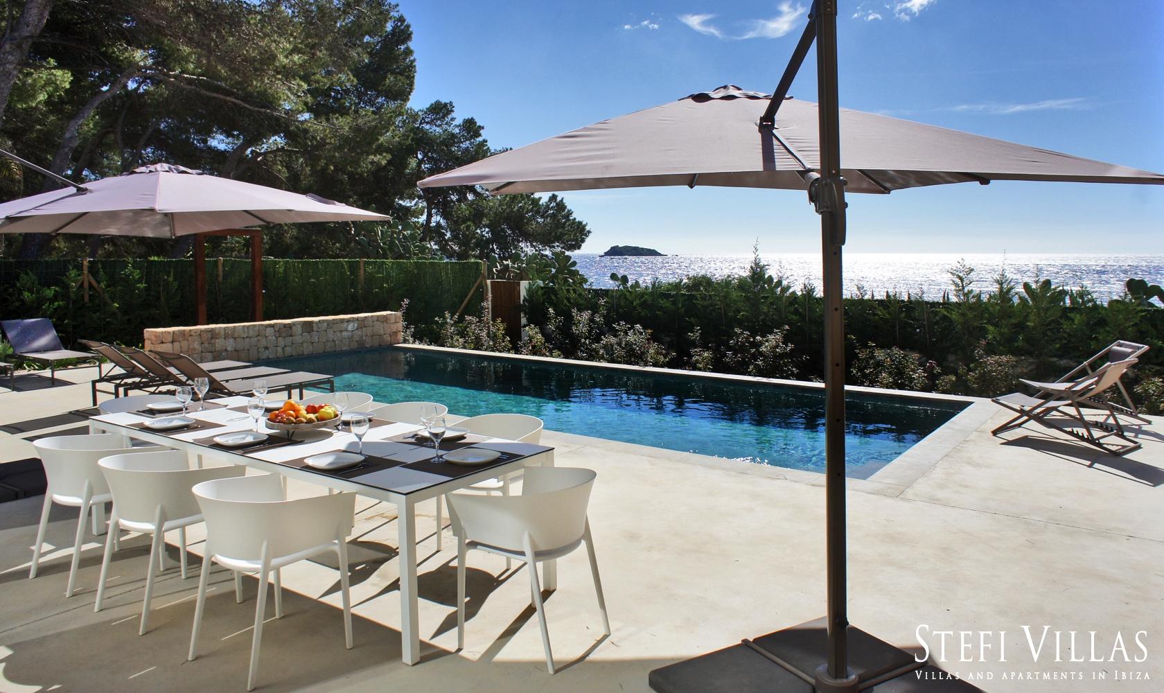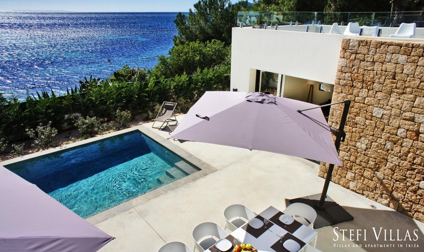 Villa en première ligne de mer Ibiza se trouve dans un endroit calme, à seulement 20 m. de la mer  et vous offre un accès direct à la plage de Cala Pada à 100m.